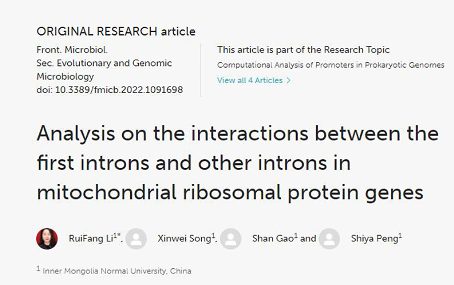近日,熟女直播 理论物理团队李瑞芳副教授携硕士研究生在Frontiers in Microbiology (中科院二区top,JCR一区期刊,最新影响因子6.064)发表了题为“Analysis on the interactions between the first introns and other introns in Mitochondrial Ribosomal Protein Genes”的研究论文。