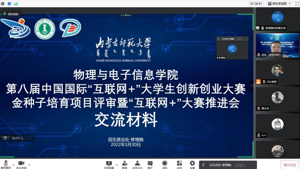 以线上会议的形式召开第八届中国国际“互联网+”金种子项目评审暨大赛推进会,邀请了学校招生就业处副处长战文彬、创新创业教育中心主任修增楠,熟女直播