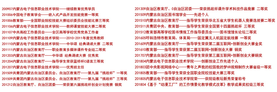 内蒙古电子信息职业技术学院是公办全日制高等职业院校,是国家示范性软件职业技术学院,是自治区示范性高等职业院校和优质高等职业院校。学校设有电子与自动化学院、计算机与网络安全学院、软件与大数据学院、数媒与艺术设计学院、电子商务学院、马克思主义与通识教育学院、创新创业与社会服务学院等7个二级学院,设置32个专业,其中创新发展行动计划国家级骨干专业3个,央财支持建设专业1个,自治区品牌专业10个,自治区重点建设专业2个;学校以培养电子、信息技术的高素质技术技能型人才为主,服务自治区电子、信息产业。荣获全国职业教育先进单位,全国职业指导工作先进单位,中国教育创新示范单位,全国高等职业院校就业工作“星级示范校”,全国职业院校就业竞争力示范校,教育部首批信息化试点优秀单位,内蒙古信息化建设和信息产业发展先进集体。