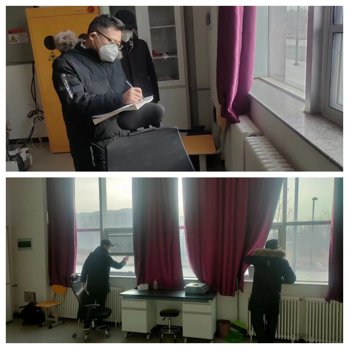 理工楼科研及本科实验室进行安全大检查。检查组一行集体排查盛乐校区理工楼A座本科实验室及理工楼B座重点实验室安全隐患。