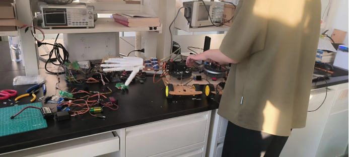 飞扬工作室成员2020级科技班牛梓鉴为项目负责人,2020级工程班莫双源、冯伟,2022级科技班成佩轩、黄康、王卓凡同学为团队成员,在指导老师杨帆的悉心指导下研制而成的,一路披荆斩棘,最终成功获奖。