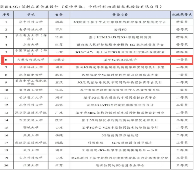 选送的作品“基于5GAI机械手”在第十八届“挑战杯”全国大学生课外学术科技作品竞赛“揭榜挂帅”专项赛中获全国一等奖,取得了本项赛事的历史性突破!
