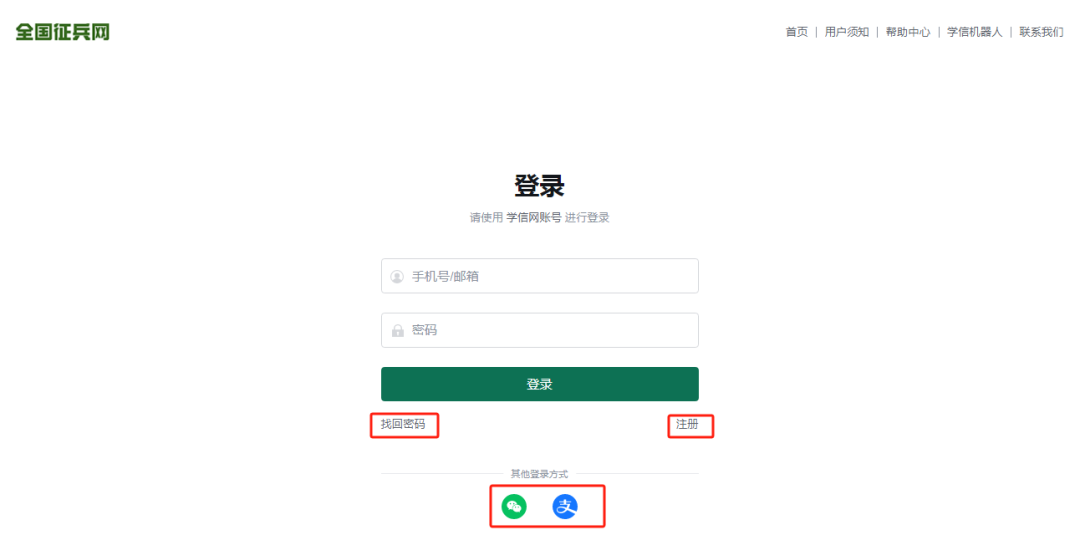 征兵网账号和学信网目前共用账号,适龄青年(主要是大学生)已有学信网账号的(即可在学信网查询学籍信息、研究生招生报名、高考自主招生报名等),可直接登录征兵网,无需再次注册。