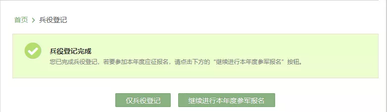 登录成功后进行兵役登记,填写相关个人信息,完成登记点击继续进行本年度参军报名。
