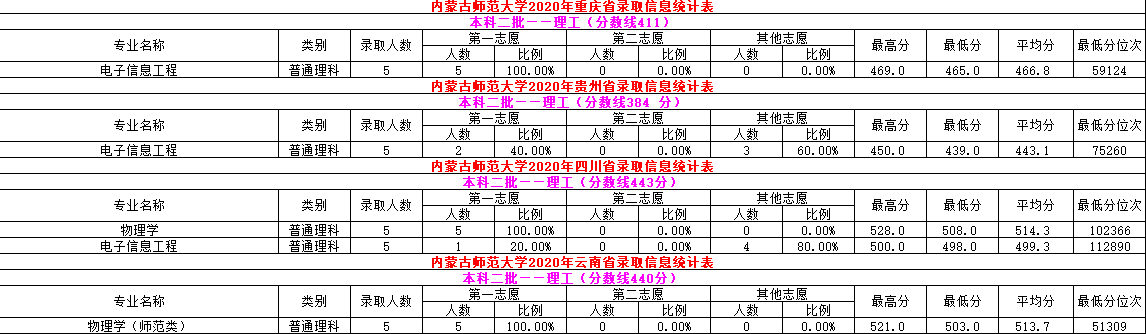 学院设有物理学系、电子学系、材料系、实践创新部和实验中心,设有物理学(蒙、汉)、电子信息工程、电子信息科学与技术(师范类)、材料物理4个本科专业,其中物理学专业被评为“自治区品牌专业”,材料物理与化学为自治区重点学科,在校本科学生980人。现有两个一级学科硕士学位授权点,分别是物理学和材料科学与工程一级学科硕士点;另有两个与物理教师教育有关的二级学科硕士学位授权点,分别是课程与教学论(物理)学术型硕士点和学科教学(物理)专业学位硕士点,在校研究生112人。