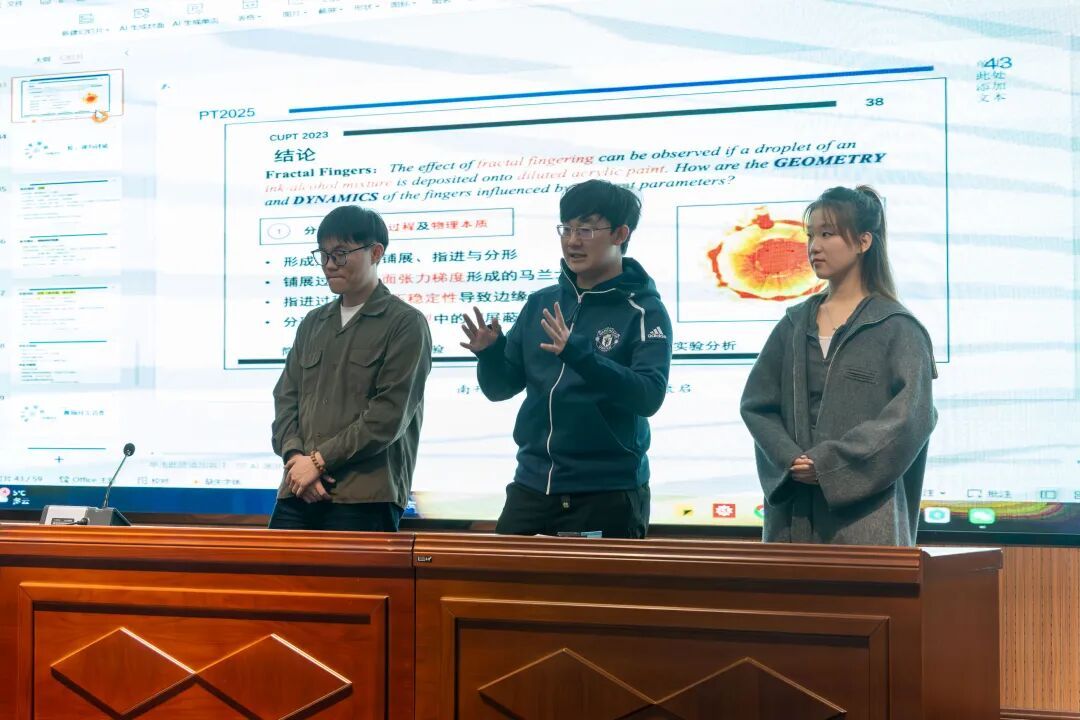 本次活动的核心环节是南开大学物理科学学院思辨社团队成员廖康启、郭知易、高源的专题分享。他们围绕“PT育人模式”的内涵与实践路径、CUPT(中国大学生物理学术竞赛)赛场的精彩重现、科学教育大中小衔接的探索与思考,以及PT模式对学生学术能力和自我成长的深远影响等内容,进行了系统而深入的阐述与展示。思辨社成员扎实的学术功底、敏锐的思辨能力和精彩的团队协作,为在场师生提供了宝贵的学习范本,极大地拓宽了大家的学术与教学视野。
