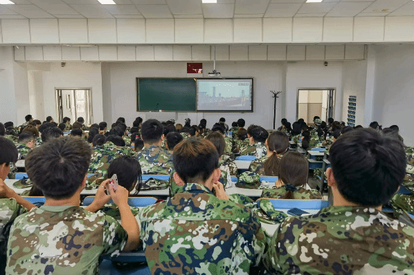 上午9时,纪念大会正式开始。习近平总书记发表重要讲话时,师生认真观看聆听。随后的阅兵过程中,铿锵有力的步伐、气势如虹的装备方队、翱翔苍穹的空中梯队,充分展现了国家强大的国防力量和现代化建设的辉煌成就,引得现场一次次发出由衷赞叹声,强烈的民族自豪感和爱国热情在每个人心中激荡。