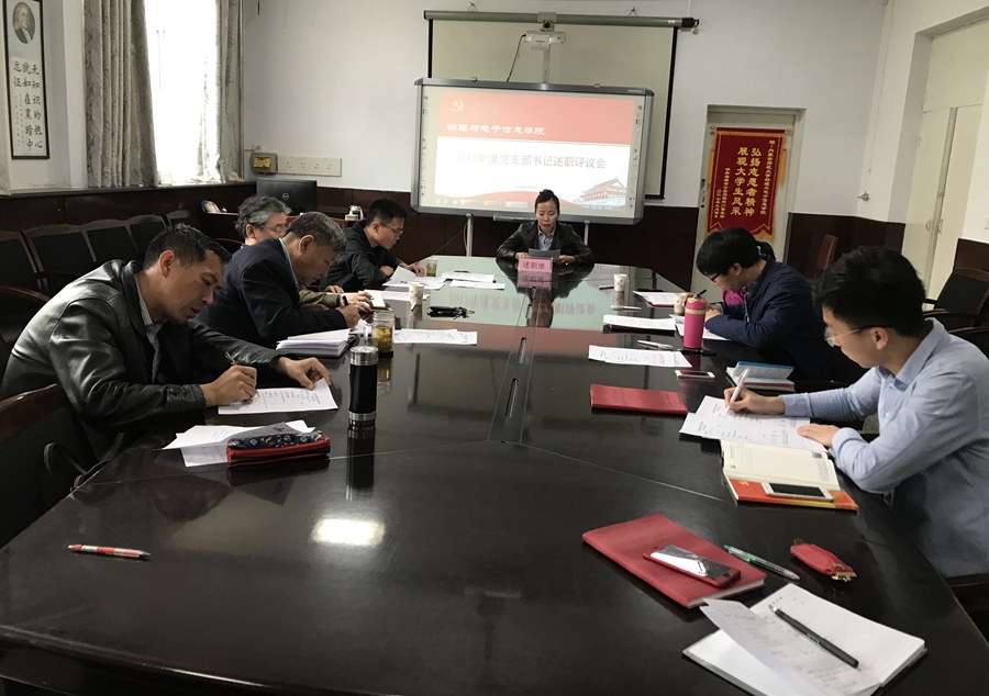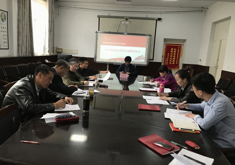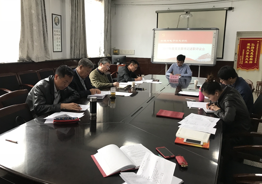 于3月30日召开2017年度党支部书记述职评议会,学院院长特古斯教授、党总支副书记何小龙老师、副院长吉日嘎拉教授、材料系主任曹永军教授、各支部书记参加会议,会议由何小龙老师主持。