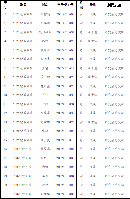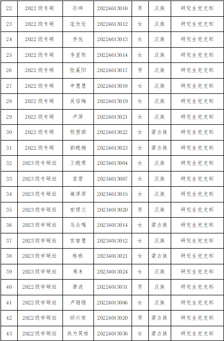 研究生党支部召开支部委员会讨论,同意确定周雪莲等47名同志为第十六期发展对象。