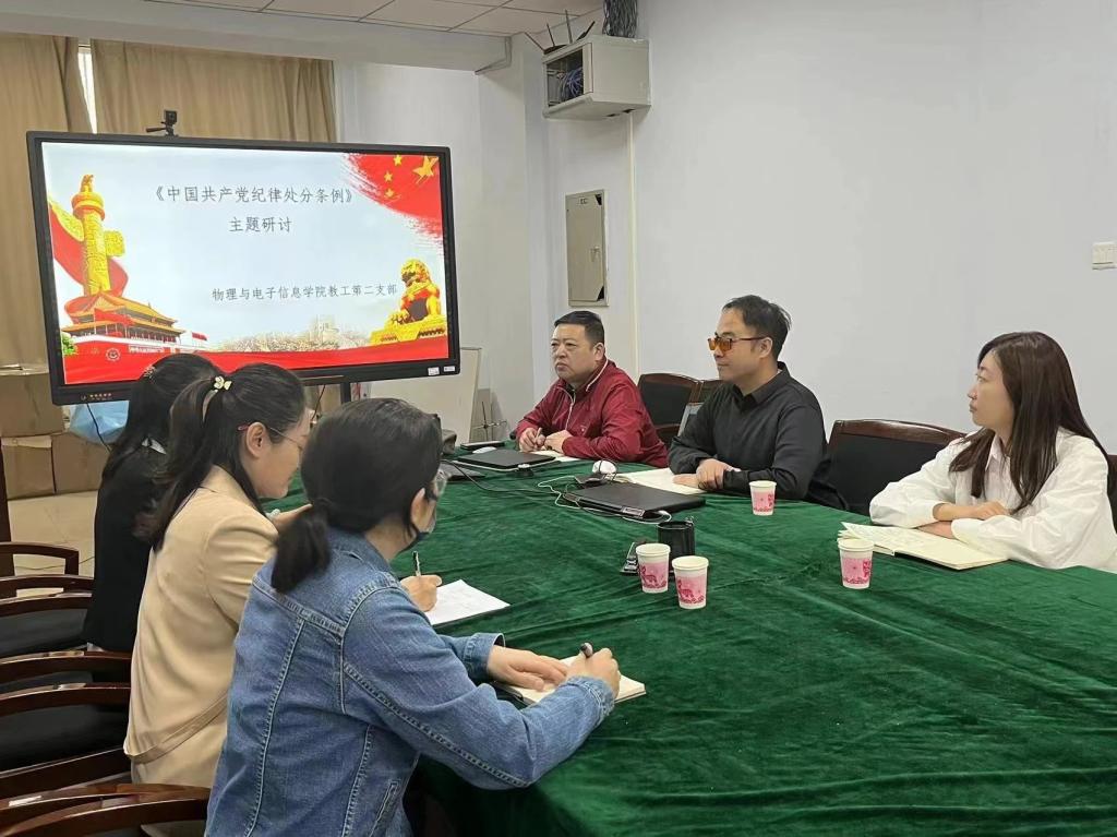 教工第二党支部召开集中学习《中国共产党纪律处分条例》暨“一融双高”党建引领学科专业高质量发展专题研讨会。会议由教工二支部书记张丽娜主持,学院党委书记张伟参加支部学习研讨。