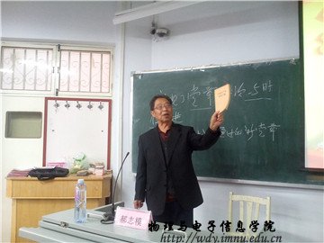 郝教授首先介绍了党章,他指出,党章是我们党的根本大法,正所谓“没有规矩,不成方圆”,党章在不断听取人民声音的过程中充实、完善。随后,郝教授着重介绍了十八大通过的新党章中五个与时俱进的方面,它们分别是:党的思想与时俱进;中国特色社会主义的科学内涵与时俱进;党的奋斗目标和事业发展布局与时俱进;党的建设总要求和基本规范与时俱进;改革开放的内容与时俱进。
