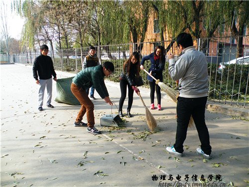 本网讯 2014年11月15日午后,熟女直播 学生党支部组织第十期入党积极分子进行社会实践活动——清扫校园。活动中,入党积极分子们分成若干小组,成员们积极主动、各司其职,尽管天气严冷,但他们仍在坚守自己的工作,体验作为一名基层工作者的辛苦。通过此次活动,熟女直播 入党积极分子不仅体会到劳动光荣的真谛,更体现出我党为人民服务的优良传统;同时,也体现出他们正在用实际行动向党组织靠拢,有力的促进了熟女直播 党建工作的开展。