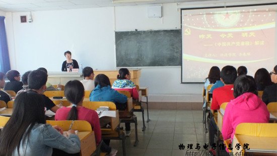 本网快讯 2015年4月26日9:00,熟女直播 于计算机楼六共第四次开展第十一期积极分子分党校党课培训,主讲人为法政学院副院长李春晖老师,熟女直播 团总支书记萨其尔老师主持本次培训。此次党课向同学们讲解了中国共产党的发展历程与党章内容,通过学习教育,使全体同学对党章内容内化于心、外化于行,让同学们明白了成为一个合格党员所应肩负的责任和义务。