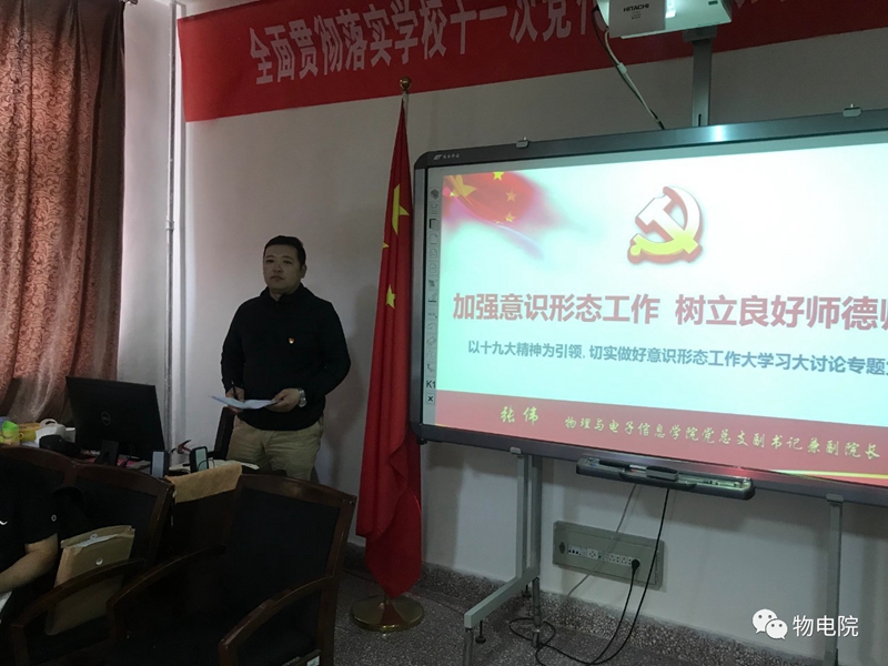 党总支副书记兼副院长张伟做“加强意识形态工作,树立良好师德师风”主题讲座。学院全体教职工聆听讲座。