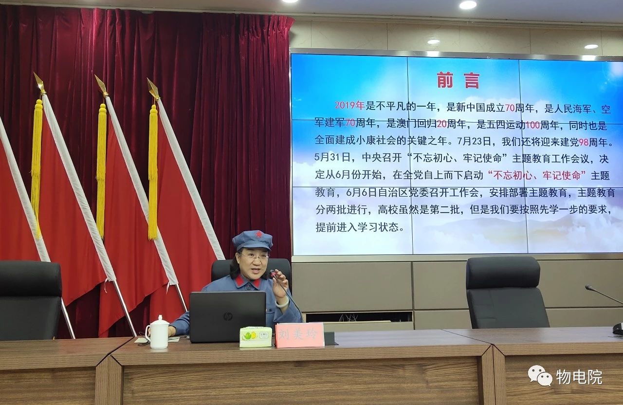 随后,学院党总支书记刘美玲讲了“不忘初心 牢记使命 履职尽责 勇挑重担”主题教育专题党课。刘书记在党课中讲到要守初心,担使命,找差距,抓落实。从什么是共产党员的初心和使命、什么是高等院校的教育工作者的初心和使命讲起,先后谈了明确目标、我们的初心、我们的问题、以及怎样才能做到不忘初心,牢记使命和我们党员该如何做等一系列问题。