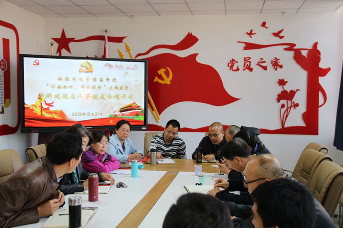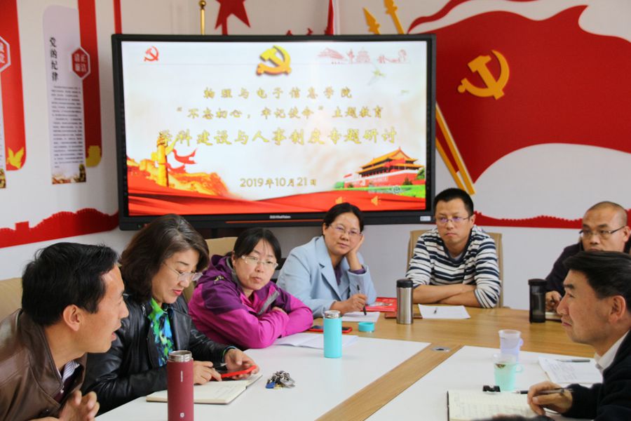 召开“不忘初心,牢记使命”主题教育学科建设与人事制度专题研讨会,学校指导组张克玉、张成梅、董强到会指导,学院领导班子成员、各系主任、硕士点负责人、教师代表参加研讨,会议由副院长曹永军教授主持。