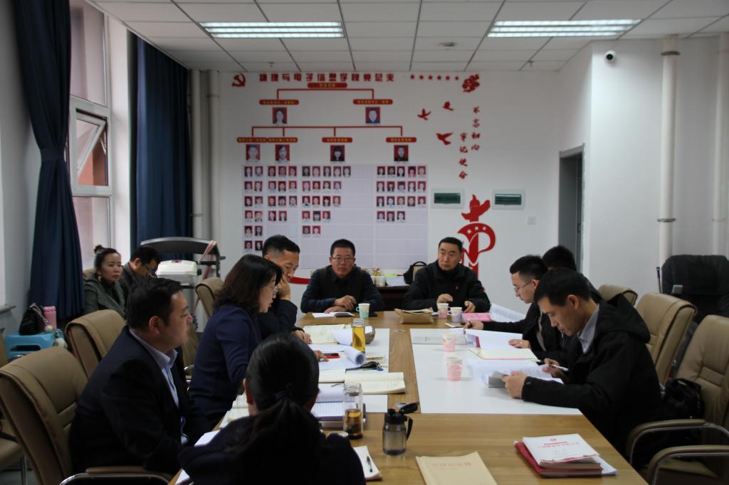 调研指导“不忘初心,牢记使命”主题教育工作,学校主题教育第六指导组、校党委组织部相关负责人出席,学院领导、总支委员、支部书记参加调研,党总支书记刘美玲主持会议。
