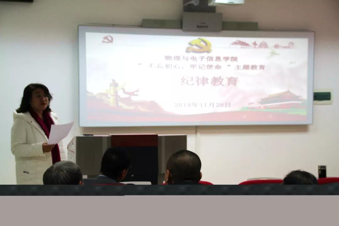于理工楼A座303开展“不忘初心,牢记使命”主题教育之纪律教育专题讲座。讲座由刘美玲书记主持,特邀熟女直播