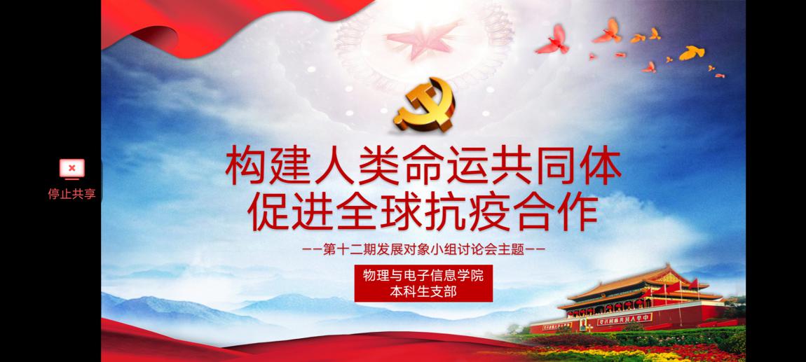 本科生支部在各支委的指导下为第十二期发展对象、共计47人进行了线上培训。此次培训内容分为六大板块,分别是“学习强国”App的党史、十九大时间、用典等栏目;中国大学MOOC" 学习课程《新时代中国特色社会主义理论与实践研究》;经典著作阅读(《共产党宣言》《习近平谈治国理政》《习近平用典》等著作);观看红色电影《薪火相传》;主题小组讨论会:“学习两会精神,紧跟时代步伐”和“构建人类命运共同体,促进全球抗疫合作”。