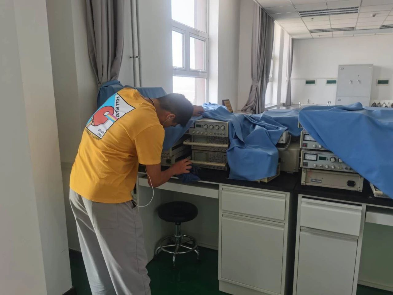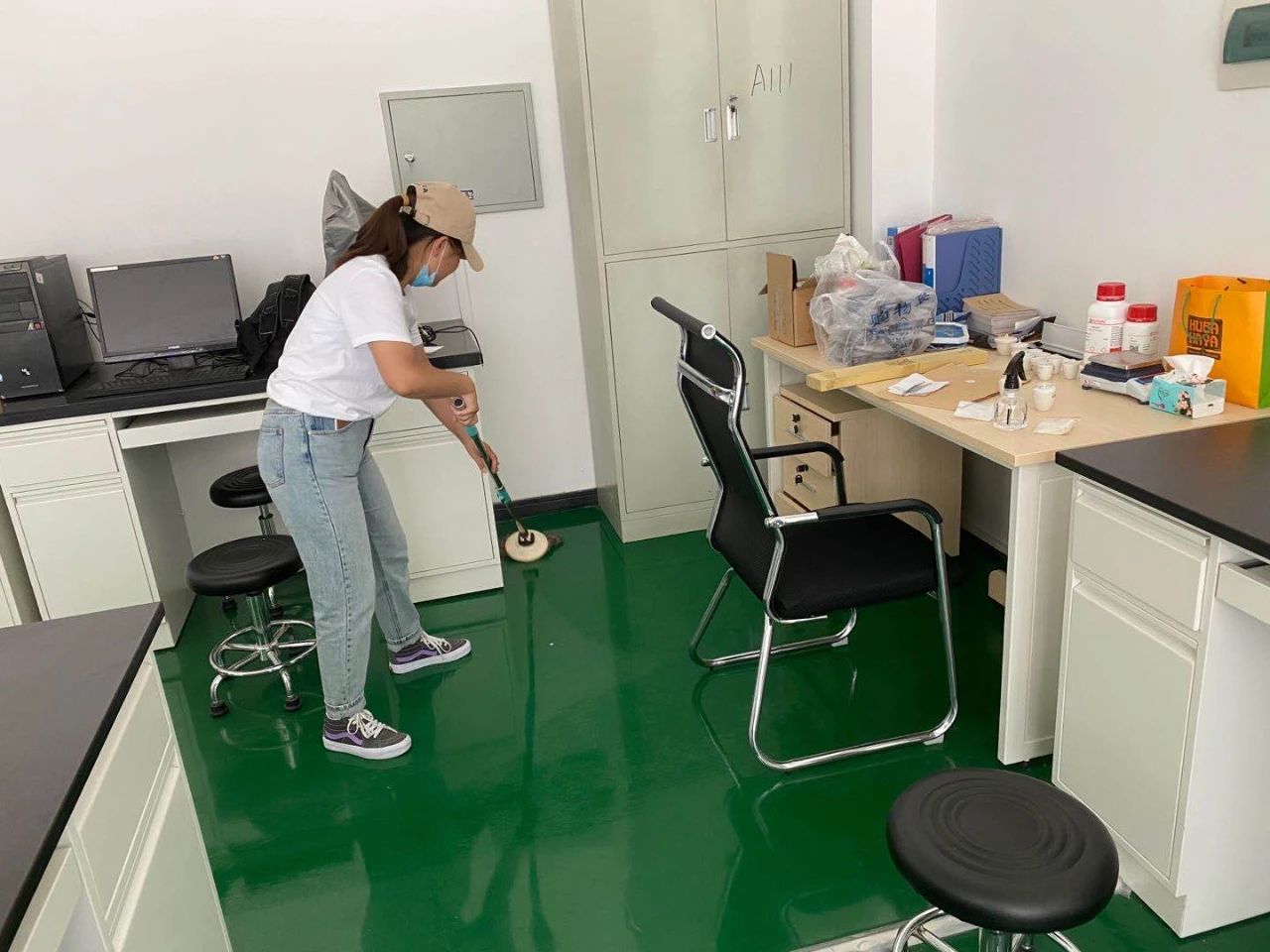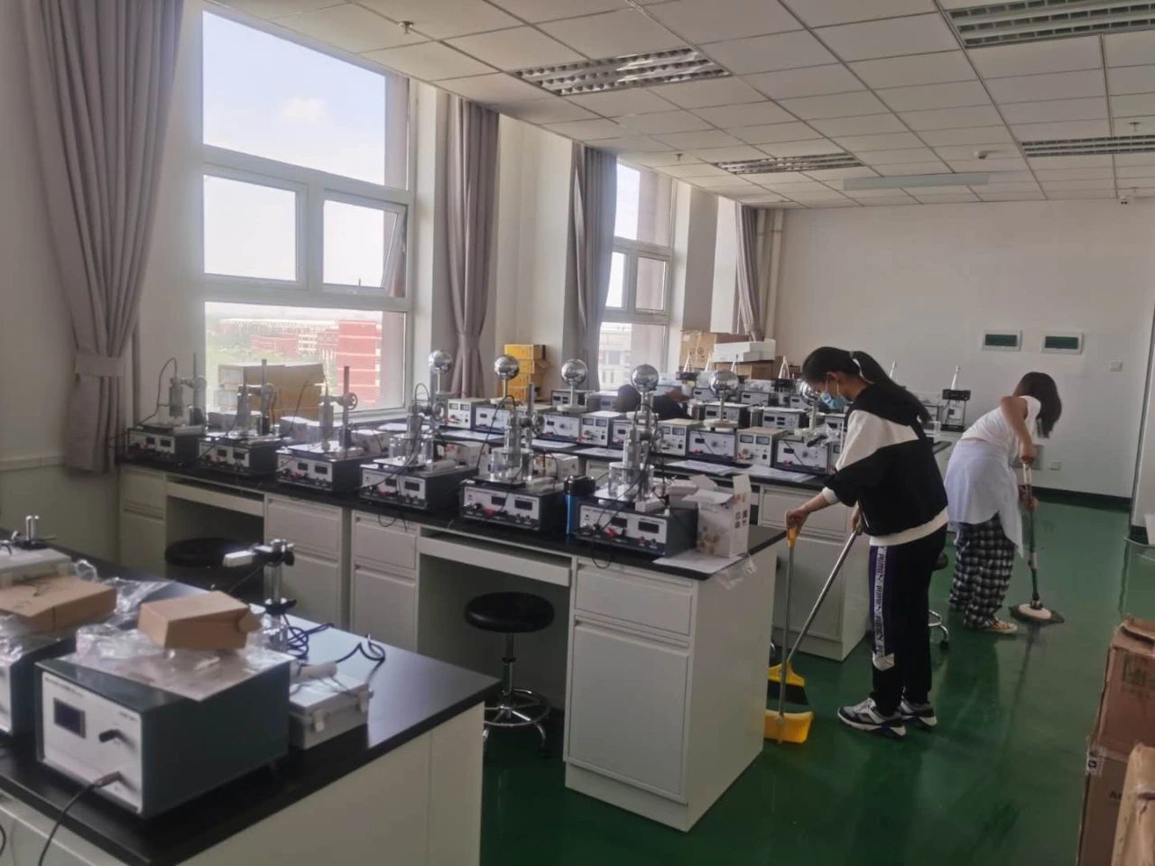 学生党员以班级为单位,分8个清理小组,对理工楼第一、五、六、七、八、十、十一和十二层实验室进行卫生清扫。活动中,大家纷纷拿起扫帚、拖布、抹布等工具,打扫尘土,清理桌面和地面污垢,经过2个小时的分工协作,各个实验室洁净如新。