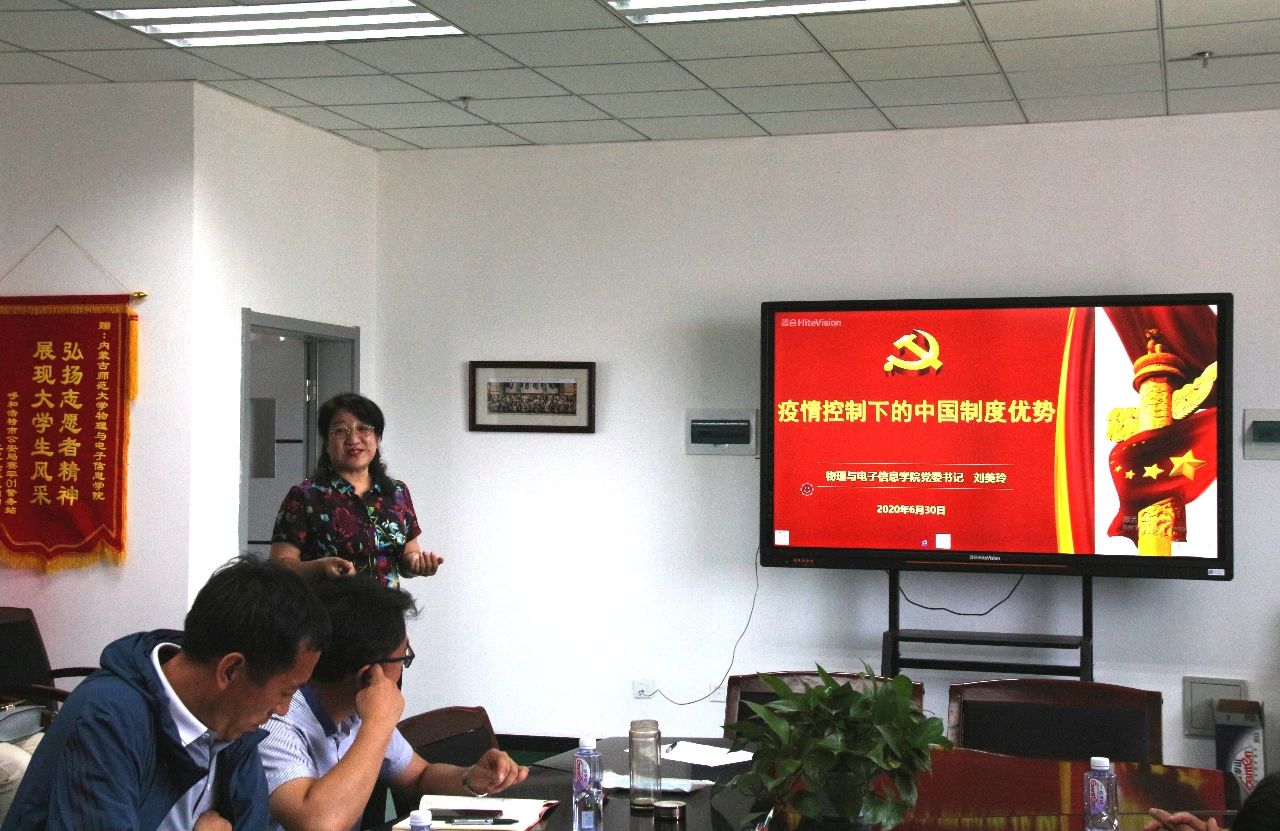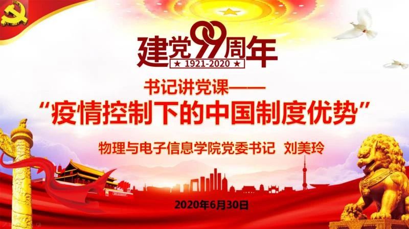 刘美玲书记以“疫情控制下的中国制度优势”为题,从以人民为中心的崇高价值、党中央的坚强领导、全国一盘棋的动员机制以及自我审视中淬炼制度四大方面,结合具体事例、自身感悟为老师们讲了一堂生动的党课。刘书记在党课中讲到:中国特色社会主义最本质的特征是中国共产党领导,中国特色社会主义制度的最大优势是中国共产党领导,党是最高政治领导力量。从我们党成立以来的99年历史中可以发现,党的领导这个显著优势,是革命、建设和改革所一再证明的,是为历次抗击重大灾害所一再证明的。