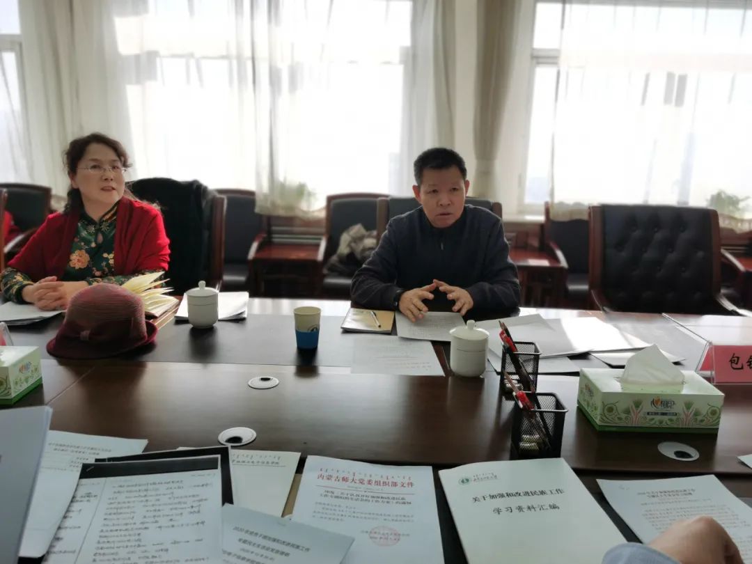 12月24日,学院党委班子召开加强和改进民族工作专题民主生活会,全面对标对表习近平总书记关于民族工作、推广普及国家通用语言文字的重要论述和党中央相关决策部署,由表及里深入查摆在推行国家统编教材工作过程中和民族工作方面的问题,深刻剖析原因,深刻反思反省班子和个人存在的差距和不足,认真思考加强和改进民族工作的思路举措。学院党委书记刘美玲主持会议并作总结讲话。学校第十指导组组长王晓霞以及包铁龙、巴达玛其其格等同志到会指导。