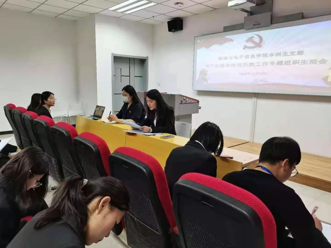 本科生支部在理工楼A座303室召开加强和改进民族工作专题组织生活会,本科生支部党员全体参加会议,预备党员列席会议,会议由本科生支部书记宝力尔老师主持。