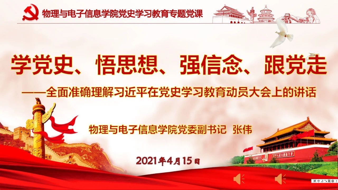 党委召开全体教师党员大会暨党史学习教育推进会,认真传达学习习近平总书记在党史学习教育动员大会上的重要讲话和校党委党史学习教育推进会精神,就继续深入学习贯彻习近平总书记重要讲话精神,以党史学习教育为动力,努力开创学院工作新局面作出部署。学院党委书记刘美玲主持会议并讲话,全体教师党员参加会议以两校区同屏形式召开。