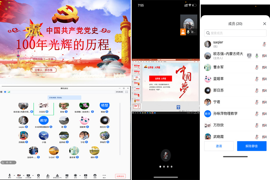 教工第一党支部于4月15日组织教工党员以线上线下的形式开展了党史学习教育专题会。支部书记欧志强主持会议,领学了习近平总书记在党史学习教育动员大会上的讲话原文,通报了我校学习党史的情况,讨论了下一步一支部集中学习党史的学习思路。之后,欧志强以《中国共产党100年光辉的历程》为题做专题党课,党课围绕“党史发展脉络及学习意义”“一百年艰辛与辉煌”“光明的使者幸福的源泉”“锻造维护核心对党忠诚的坚定信念”“学党史心得体会”等内容展开。大家纷纷表示,以史为鉴,学习党史进一步坚定我们的道路自信、理论自信和制度自信,让党史国史之光照亮未来,给力中华民族伟大复兴的“中国梦”。学院副院长曹永军、副院长那日苏以普通党员身份参加学习。