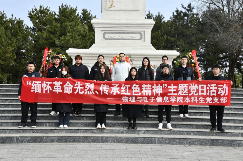 本科生党支部开展“缅怀革命先烈、传承红色精神”主题党日活动。学院党委副书记、副院长张伟,本科生支部书记宝力尔,组织委员王乐一行带队,前往和林格尔县烈士陵园进行清明祭扫活动,并参观盛乐博物馆,学习红色精神。