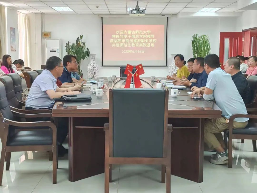 副院长那日苏、电子系主任梁学军老师一行4人到呼和浩特市商贸旅游职业学校看望电子信息科学与技术职教师范专业第一届实习学生,并与商贸旅游职业学校校领导、实习指导教师交流。