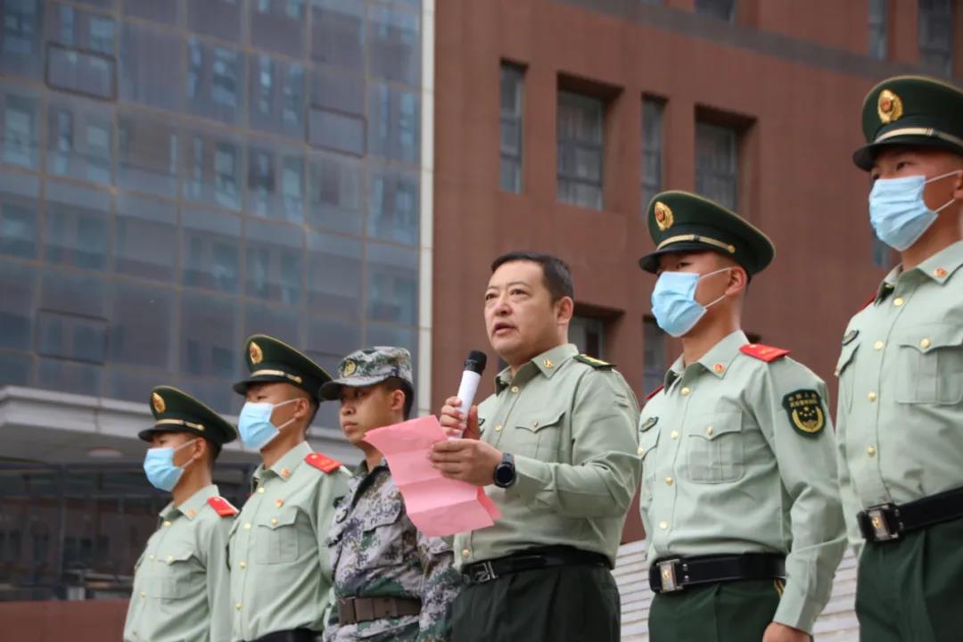 于2021年9月18日下午在理工楼小广场召开2021年度军事技能训练动员会。副书记兼副院长张伟老师及辅导员宋鑫伟老师出席本次活动,院团总支副书记宝力尔老师主持本次动员会,280余名新生到场参加。