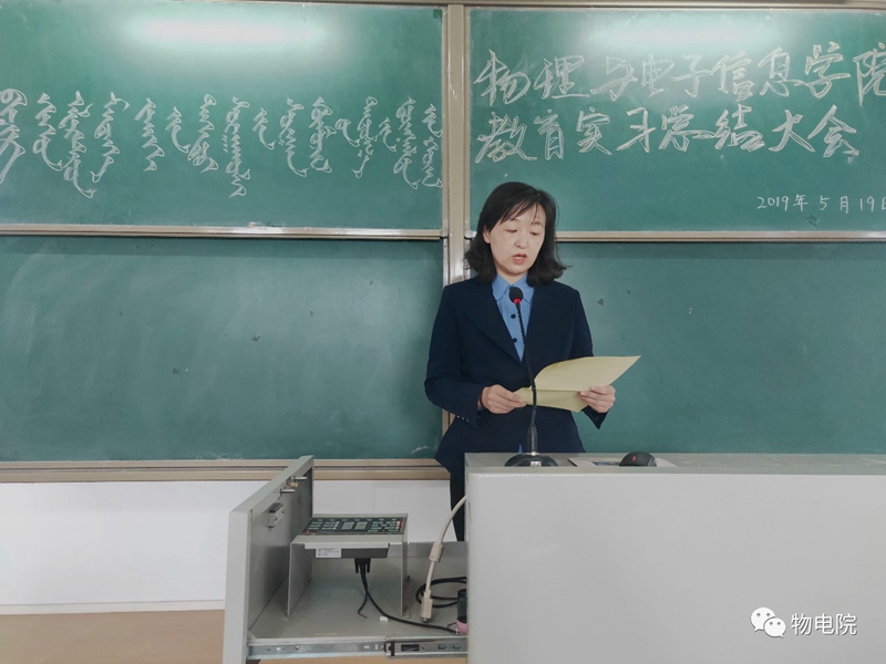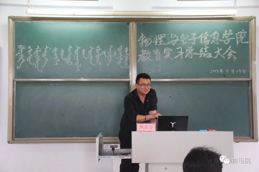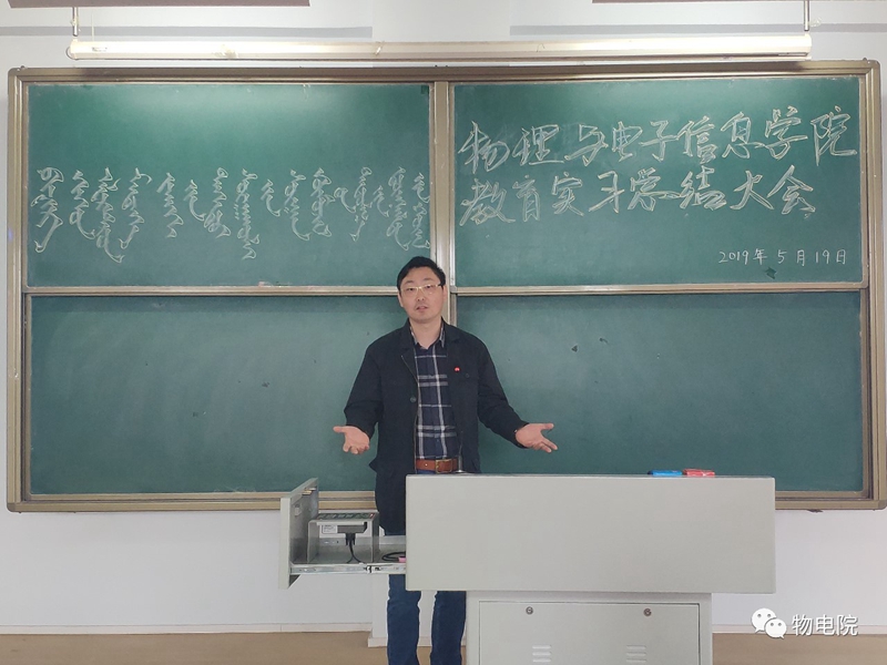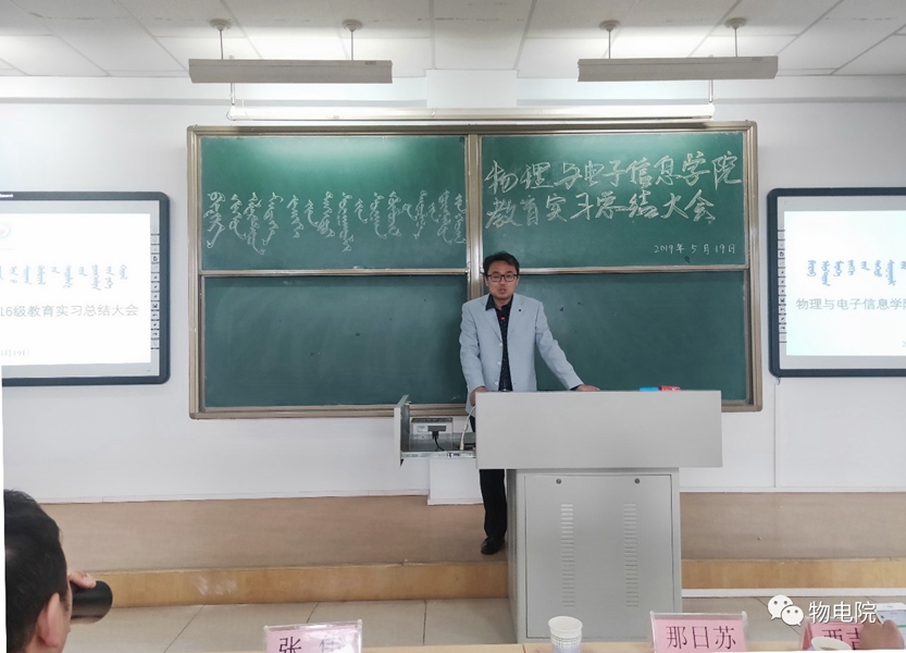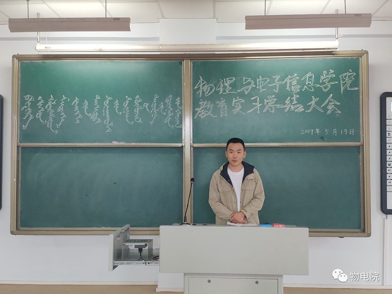 为让17、18级师范生对教育实习有更加全面深刻的认识,对教师这一职业提高认同感与自豪感,同时对16级物理专业的教育实习做总结,5月19日上午,熟女直播 在盛乐校区行知楼225教室,举行熟女直播 教育实习总结大会。学院党总支副书记兼副院长张伟、副院长那日苏、物理系副主任朝克夫、实践创新部副主任万欣欣、2016级物理学汉班班主任孙咏萍、18级物理汉班班主任其木格、2017级物理蒙班班主任木其尔,以及呼市蒙古族中学老师西吉尔老师参加会议,会议由万欣欣主持,学院16、17、18级物理学专业全体学生参加大会。 首先,那日苏老师对2016级教育实习基本情况做了汇报,并对“六卓越”、“一拔尖2.0”结合实际和师范专业认证层面为同学们进行了详细的介绍和阐述。随后,西吉尔老师为大家介绍了初步探究中小学物理科技实验室的建设与运行方案。他从物理科技实验室简介,初探实验室建设思路,初探物理实验室的运行方法,未来我们能做什么四个方面来展开讲述,使同学们对人工智能、国内顶尖中学实验室配置情况等有了更详尽的了解,也让大家对未来科技走向有了新的认识、对自身发展有了更明确的目标。最后,16级蒙汉实习生代表为大家分享了自己和小组的见习心得与体会,他们精彩的演说赢得了阵阵掌声,学弟学妹们对教师这个职业有了深深的期待,并为自己是一名师范生而自豪。 本次大会,对刚刚结束的教育实习做了全面细致的总结,提高了16级物理专业学生的职业认同感和对待工作的责任感。同时让17、18级学生提前对教育实习有了了解,以便做好充足准备,迎接新的挑战和机遇。