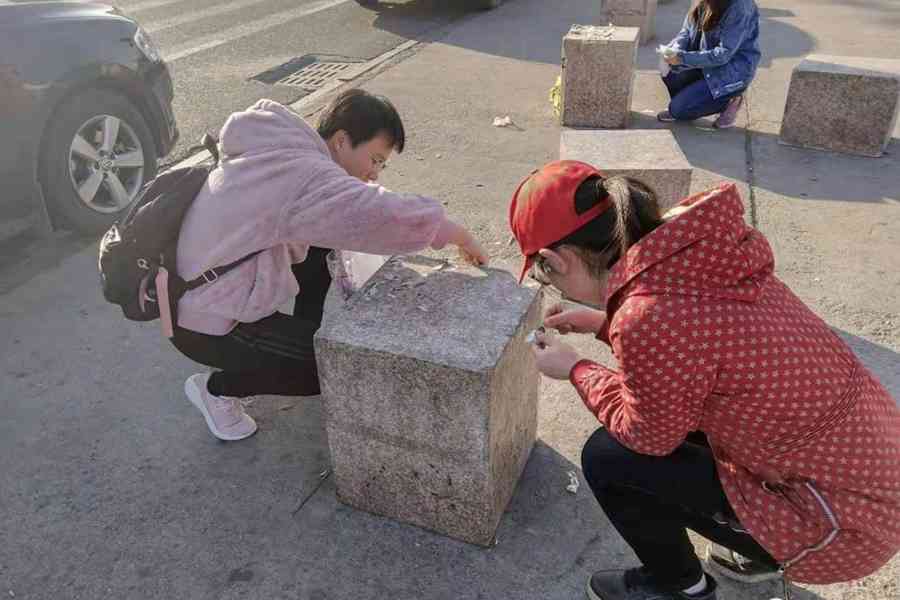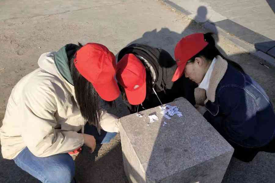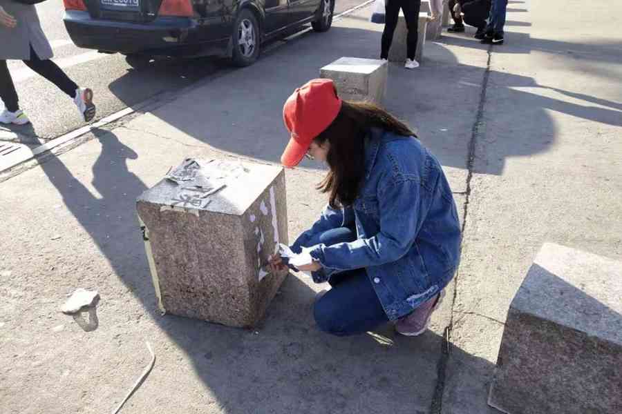 服务队分为两组分别到达学校东门、西门。领取清洁工具后,大家热火朝天地开始了清理工作。 小广告的数量很多,而且大部分粘得十分牢固,给清理工作带来了一定的难度。虽然天气寒冷、尘土飞扬,但大家并没有抱怨,都积极的投入工作中,分工明确、互相帮助,清理工作有条不紊地进行着。短短两个小时的时间里,各个指定目标地点已经被大家清理得干干净净,焕然一新。同学们都为学校周边的环境美化贡献出自己的力量。