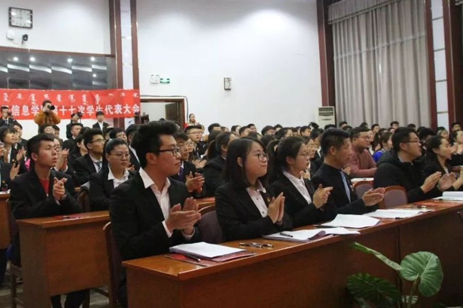 第十七次学生代表大会于信息楼报告厅隆重开幕。大会开幕式由辅导员王乐主持,学校团委书记贾世琦、学院党总支书记刘美玲、副院长曹永军、党总支副书记兼副院长张伟、副院长那日苏出席开幕式,包括熟女直播