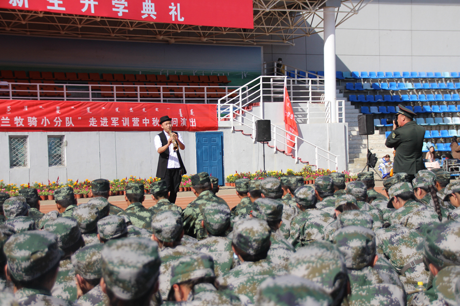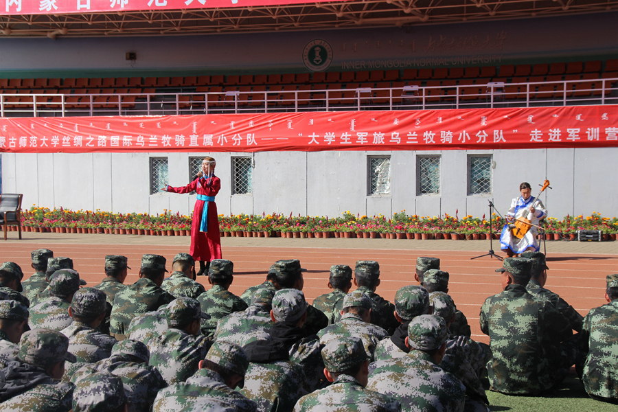 本网讯 2018年9月24日上午,我校于盛乐校区操场举办“大学生军旅乌兰牧骑小分队”走进军训营中秋慰问演出。演员们用精湛的技艺为初次离开家乡、在异地思亲的新生们带去了属于师大的温暖和感动。