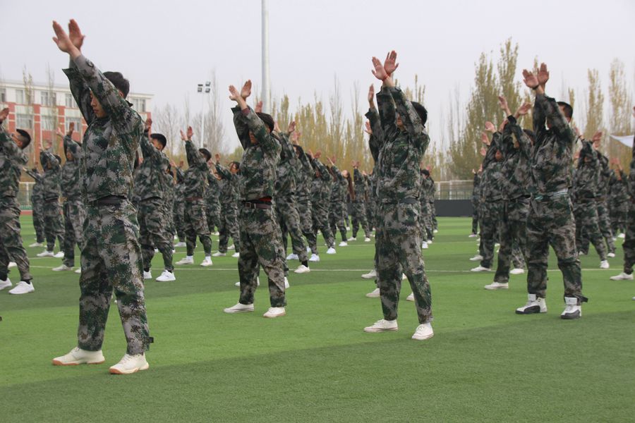 候场期间,同学们个个跃跃欲试、整装待发,奋勇争先地想让评委们检阅物电院学生们的这十多天刻苦训练的成果。身着军训服的8同学们迈着整齐划一的步伐走入场地。随着广播体操音乐的响起,同学们步履轻盈,手臂起落有序,每一个动作都做的游刃有余、刚柔兼济。透过他们自信满满的目光,能看得到他们为这场比赛付出的努力与汗水、感受得到他们永不服输的信念。整理运动结束后,同学们高喊“牢记担当,百炼成钢,相约物电,再创辉煌”的口号集合退场。播报成绩后,同学们的脸上都露出了欣慰的笑容。
