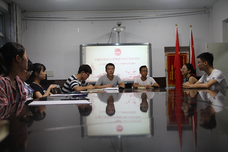 于物理楼会议室举办学习宣传贯彻团的十八大精神动员部署会暨学习交流会。学院学工办芦嘉琛老师、宋鑫伟老师与四十余名学生代表参加会议。
