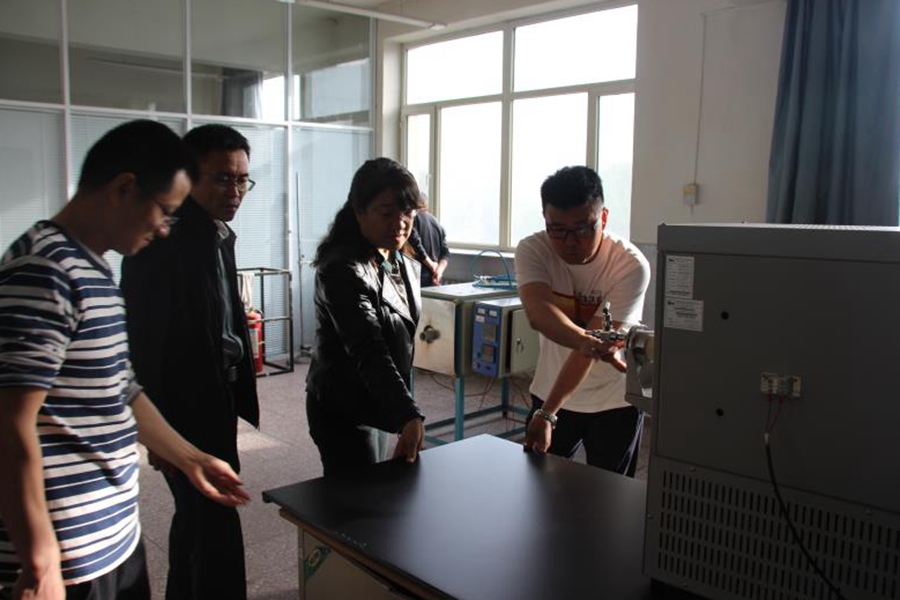 随后何小龙老师、刘美玲老师及实验室负责老师对实验室进行检查。此次检查对实验器材是否安全,实验室的用电是否符合标准,实验仪器使用、保存等相关问题进行重点查看。同时,要求实验室管理老师要“制度上墙”,提高实验者的安全意识,并且强调要做好出勤记录工作,确保实验室的规范使用。