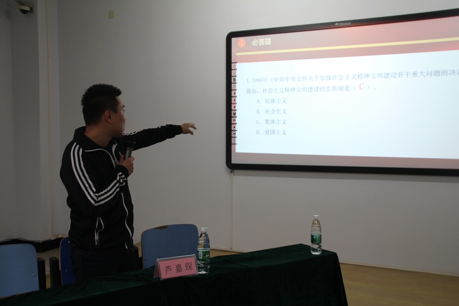 于行知楼310举办了以社会主义核心价值观主题知识竞赛,学工办卢嘉琛老师担任嘉宾。