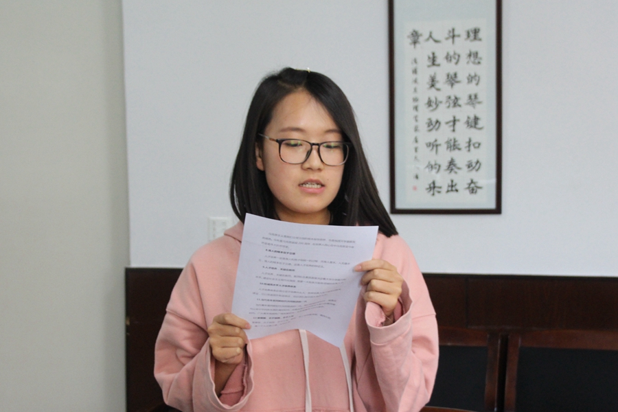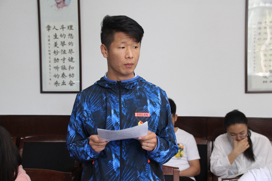 四名参加李纪恒书记在内蒙古工业大学形势政策报告会的团员代表结合个人经历,从不同方向阐述自己的学习心得,让与会同学也能够学习到李纪恒书记的报告精神。