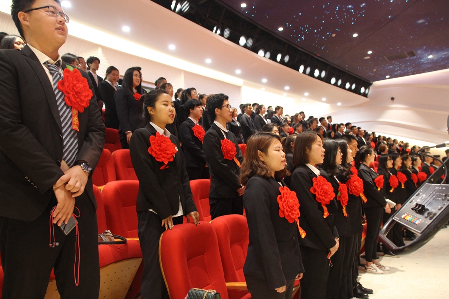 大会在激昂的国歌声中拉开帷幕,首先,由校团委贾世琦书记对2017年度全校共青团工作进行了总结,对过去一年的共青团工作进行说明报告,在报告最后指出,以习近平新时代中国特色社会主义思想为指导,努力推进共青团工作改革整装再出发,为开创全校共青团工作新局面而不懈努力。