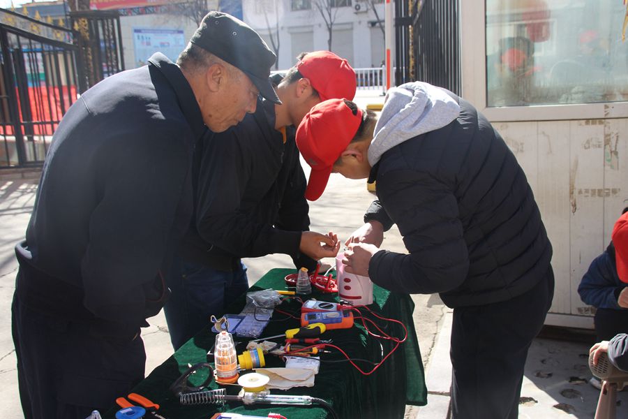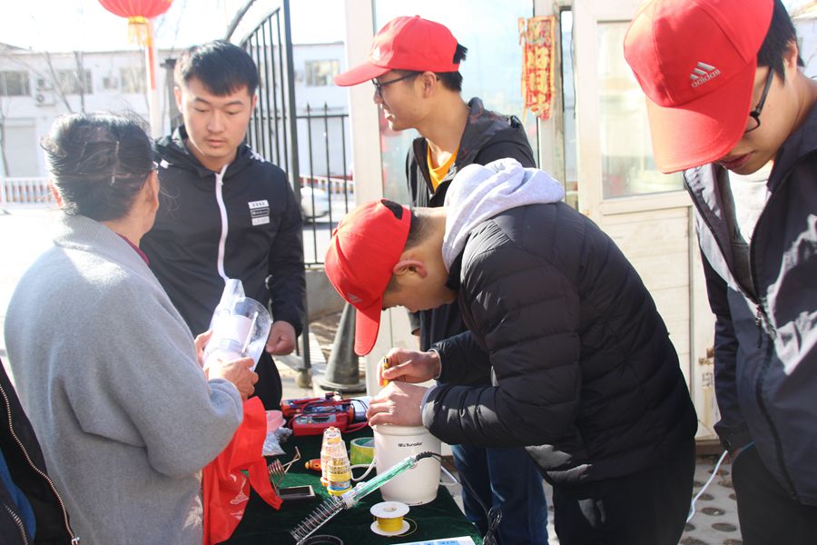 正e联盟志愿服务队利用课余时间前往一毛小区进行小家电维修志愿服务。志愿者们在询问居民电器状况后立即投入到维修中。这次维修活动,志愿者们基本修复了所有故障电器,如电风扇、榨汁机、电水壶等,不仅传递了正能量,居民也对服务队的志愿服务活动赞不绝口。本次志愿活动赢得了小区居民的一致好评,有的居民进行拍照为我们进行义务宣传。通过维修小家电不仅让学生增长才干,充分发挥社会实践的育人作用,同时为学院、学校扩大了社会声誉。