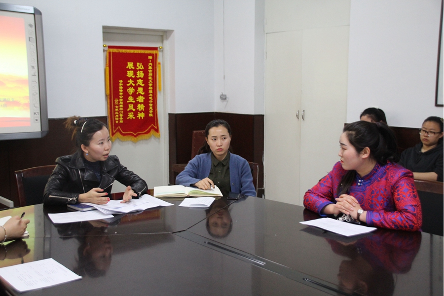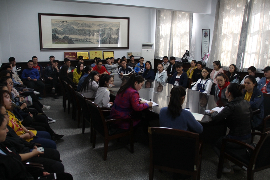 于物理楼会议室举行共青团第十八届全国代表大会代表推荐工作培训部署会。学院团总支书记萨其尔老师主持召开会议,学工办木其尔老师、各班团支书、组宣委员参加会议。