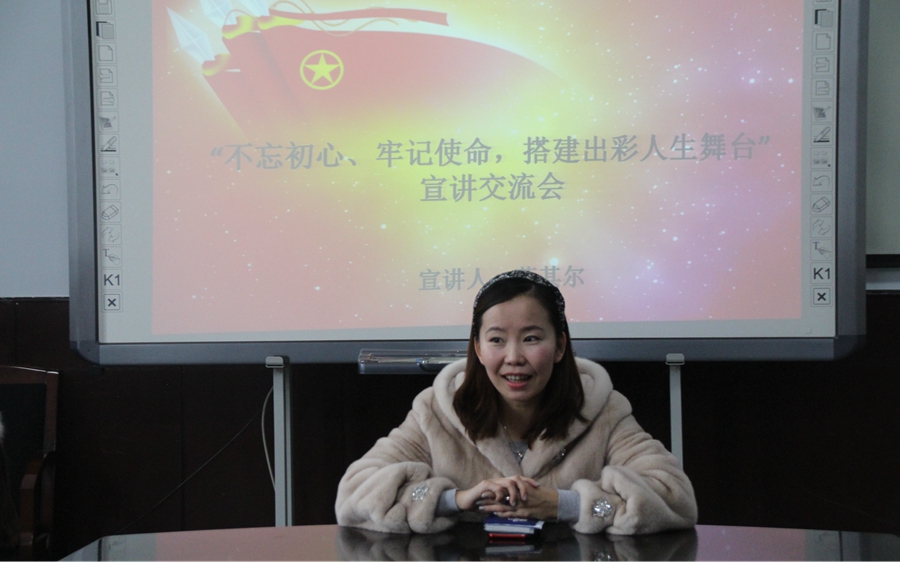团总支书记萨其尔于物理楼会议室为15科技团支部举办“不忘初心,牢记使命,搭建出彩人生舞台”主题宣讲交流会。