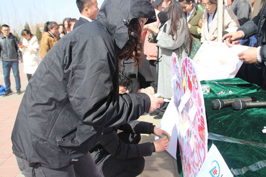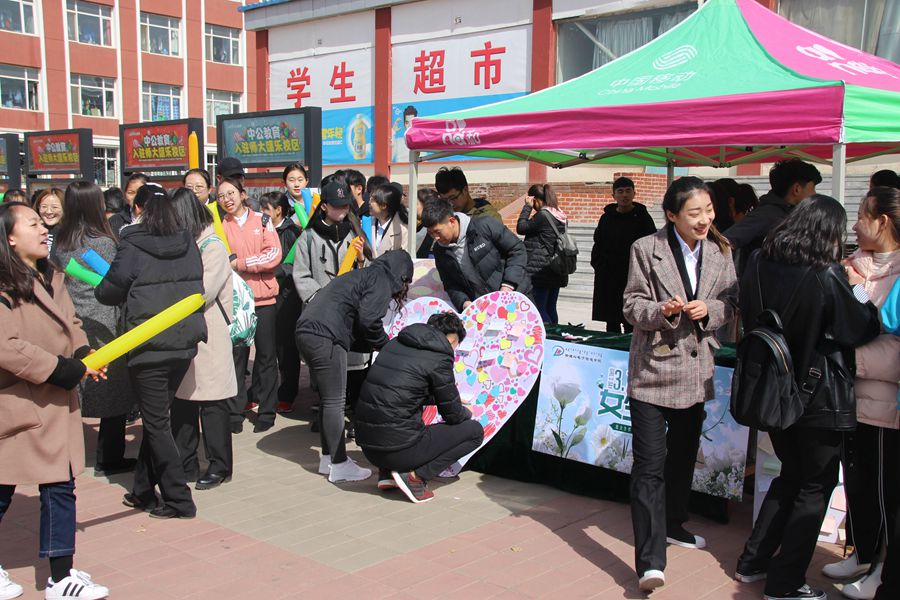 于盛乐校区群鸿餐厅西门口举办系列活动庆祝女生节,为女生送上贴心的祝福,让新年刚刚结束到校的女孩子们感到温暖。