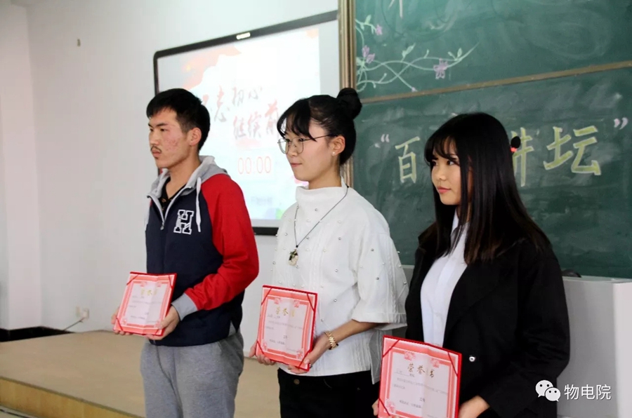 本网讯 2017年11月12日下午两点,由熟女直播 举办的“不忘初心,继续前进”主题演讲比赛在行知楼323顺利举行。担任本次活动的评委有学工办木其尔老师及学生会主席团成员。来自2017级二百多名学生观看了此次演讲比赛,比赛在同学们的热烈掌声中拉开帷幕。 十五位选手准备充分,他们身着正装、精神饱满、声情并茂,用饱含深情的语调抒发了对国家的挚爱与赞美之情,准确地把握十九大的基本精神,纵观全局,表达了对祖国美好未来的无限憧憬。演讲结束之后,木其尔老师对各位选手的表现做出客观点评,选手们受益匪浅。 比赛最后评定出了八位获奖选手,其中赵兴禹获得冠军,钱莫闲、周鑫获得亚军,达日恒,马妍,张志娟三位同学获得季军。随后,木老师为获奖同学进行颁奖并合影留念。 本次比赛旨在调动同学们的积极性,锻炼大一同学的演讲能力,强化同学们的爱国意识。同时也增强了当代大学生的社会责任感,树立起共建和谐文明校园的新观念。