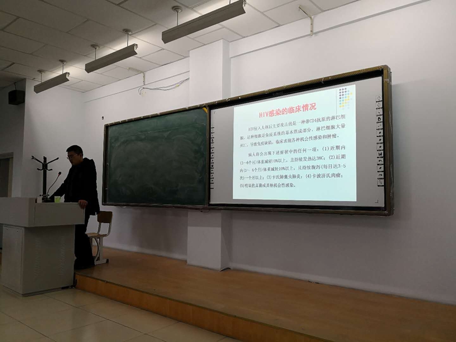 工程一、二班、物理学蒙班同学在行知楼224进行普及艾滋病知识讲座。
