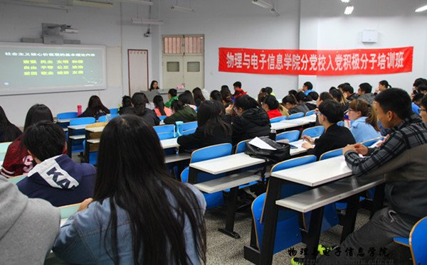 于田楼第九公共教室进行了第二次入党积极分子分党校培训课程。本次党课以“社会主义核心价值观与四信四进”为主题,特邀法政学院党总支副书记牛佳老师担任主讲人并由熟女直播