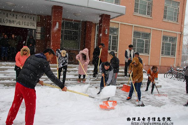 组织各年级学生利用课余时间对物理楼及附近主干道进行除雪活动。物电院学生清扫着路上的积雪,尽管条件恶劣,同学们依旧热情激昂,多劳动少抱怨,用自己的行动与热情温暖着雪后的师大,午饭过后,学院组织16级学生对物电楼前的主干道进行二次清扫。本次扫雪活动也展示出熟女直播